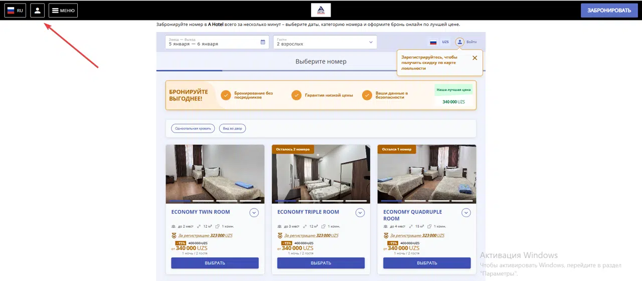 Пройдите простую регистрацию в форме бронирования и получите виртуальную карту для первых бронирований со скидкой. Номер карты привязан к вашему номеру телефона, поэтому запоминать его не нужно. Чтобы ночи накапливались и повышался уровень участия, обязательно войдите в свой аккаунт перед оформлением брони.